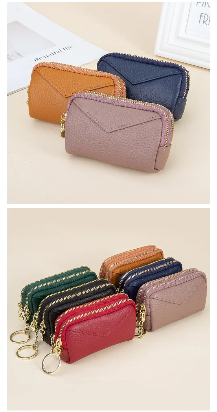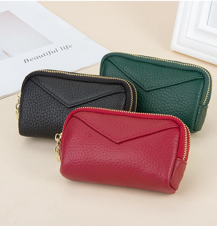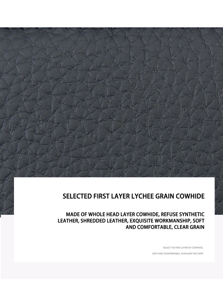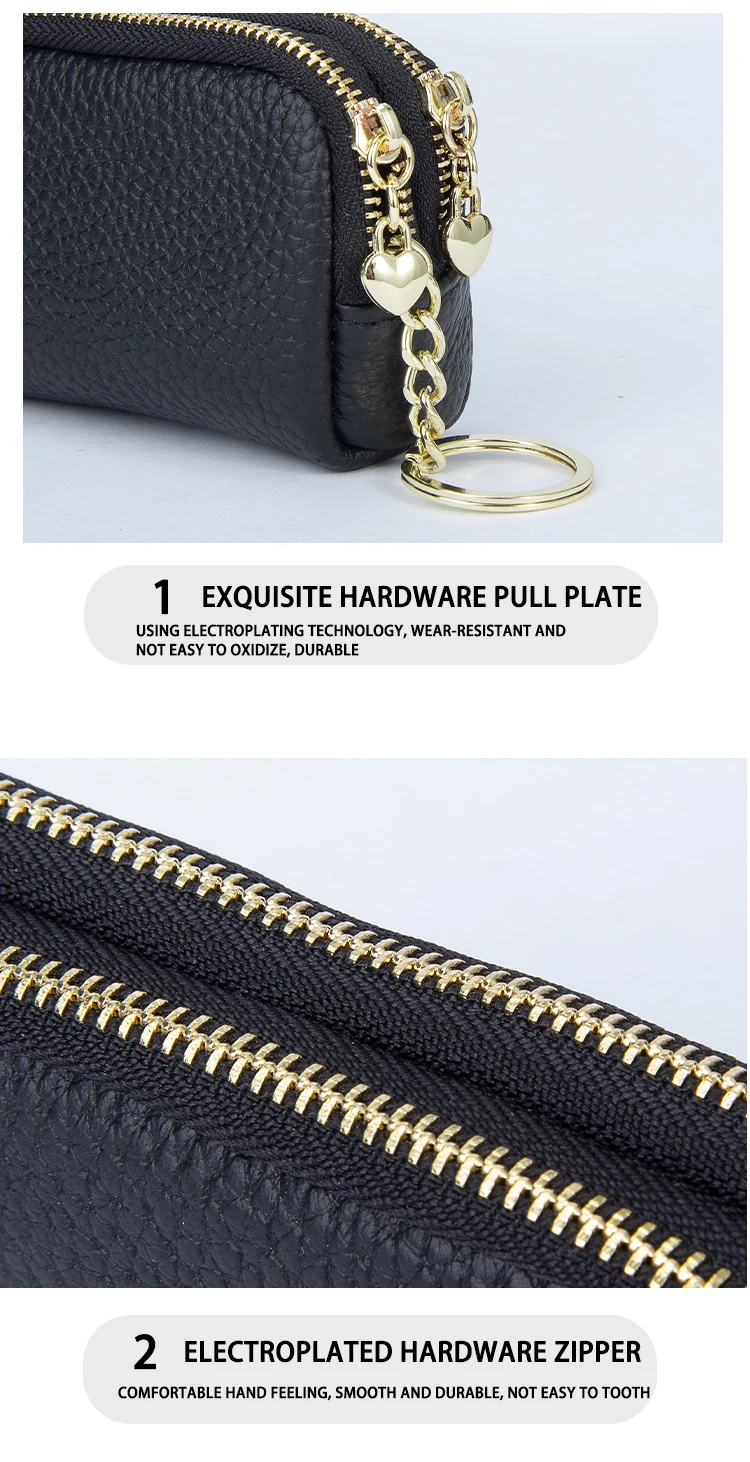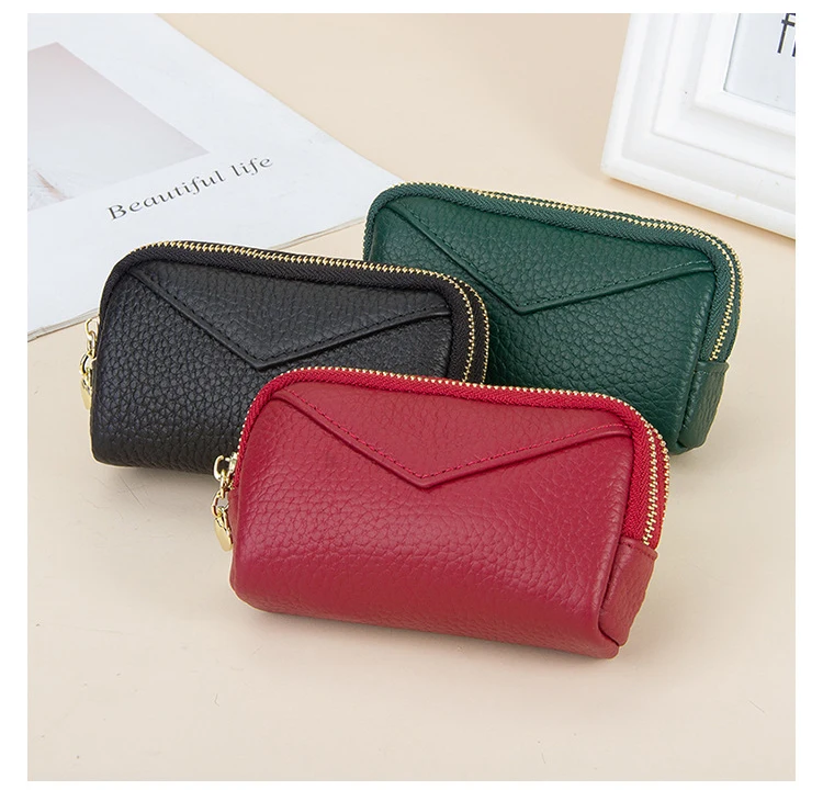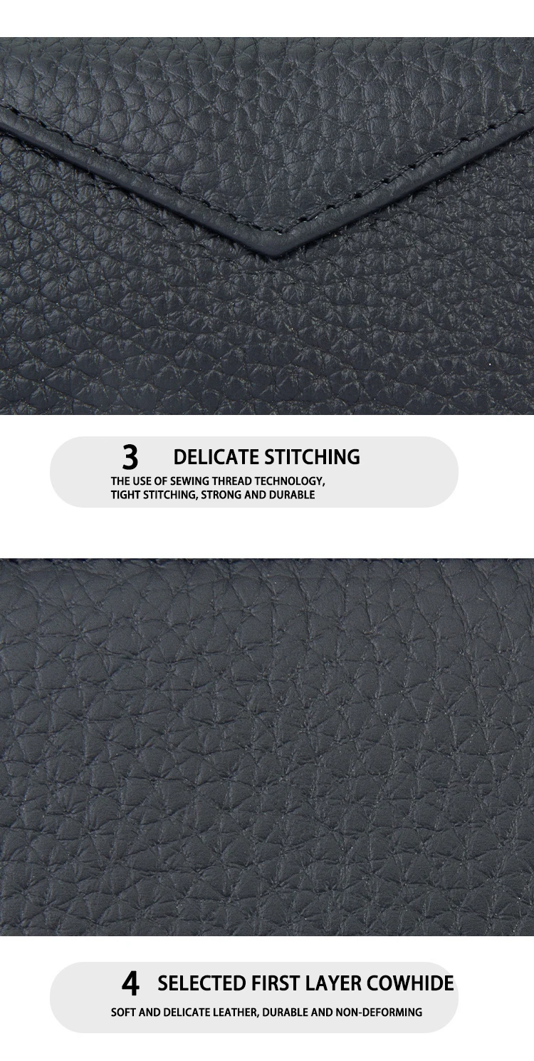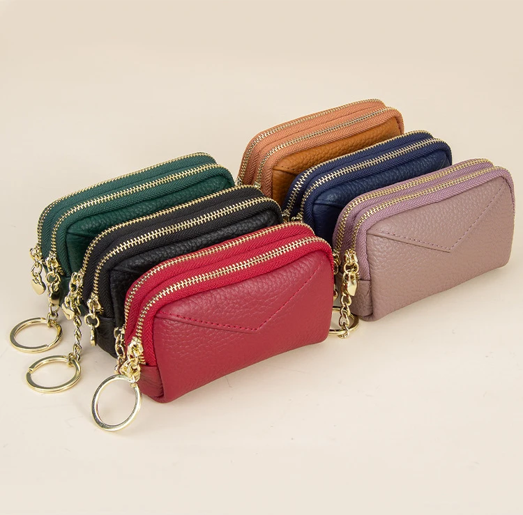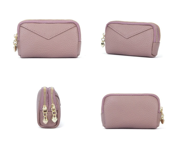 Color: black, wine red, dark green purple, treasure blue, earth yellowMaterial: First layer lychee grain cowhideDimensions: Length 12.5cm * width 4.3cm * height 7.5cmStructure: Double zipper double compartment pocketWeight: 0.07KG