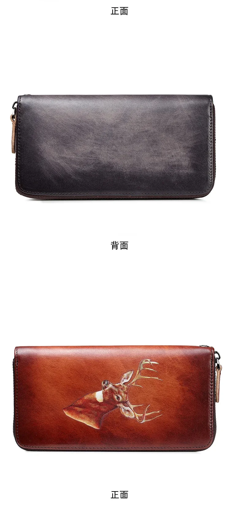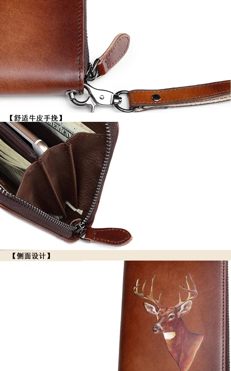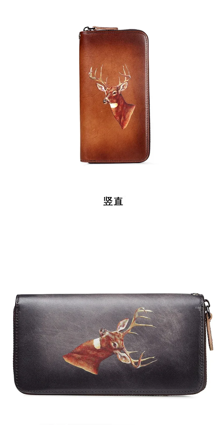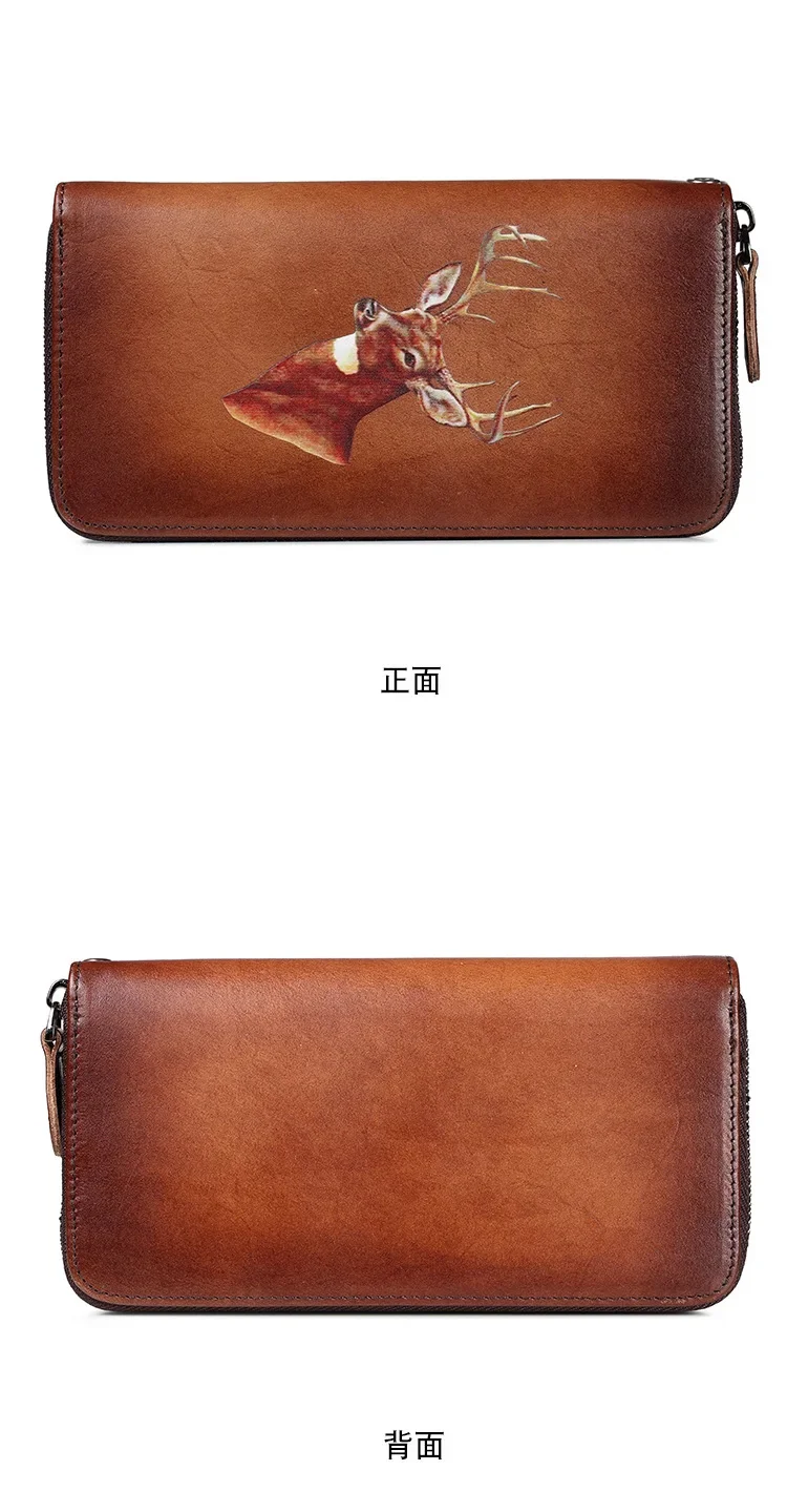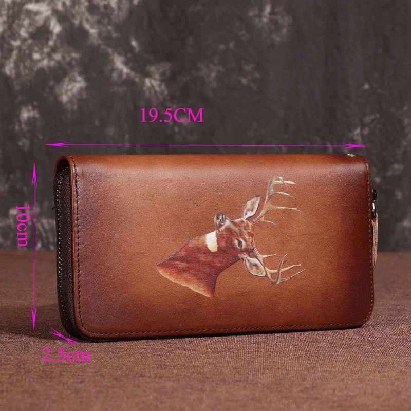 Women Wallet Money Bag Clutch Casual Wallets Zipper Long Retro Deer Designer Brand Luxury Cards Holder Genuine Leather Purse