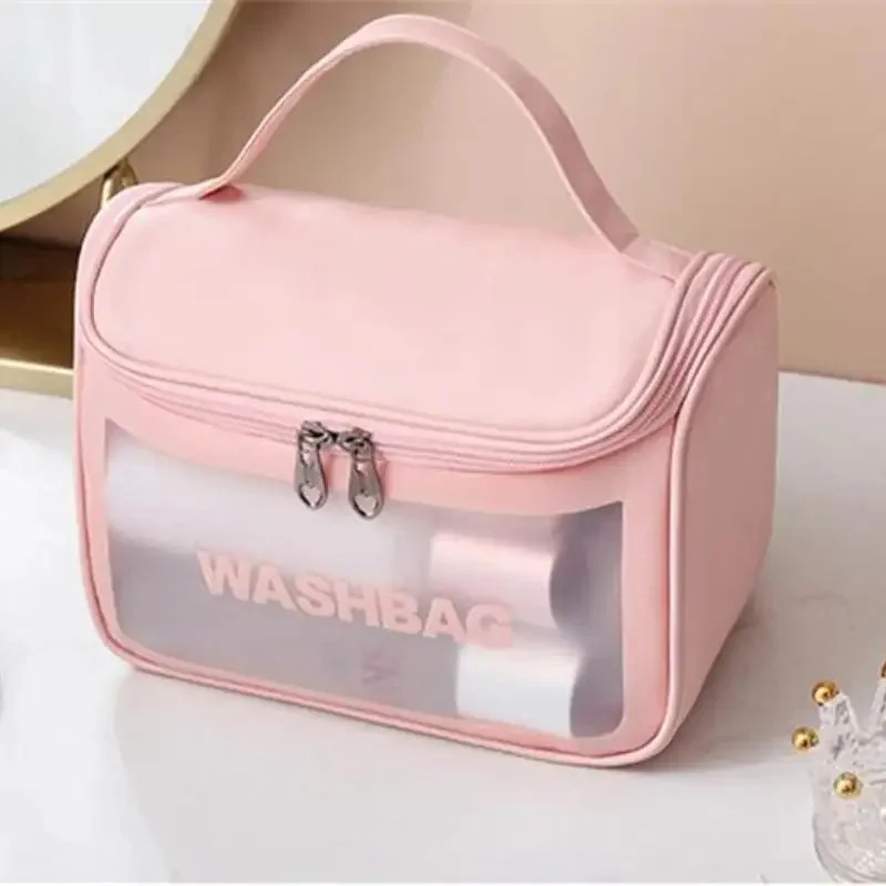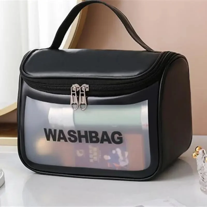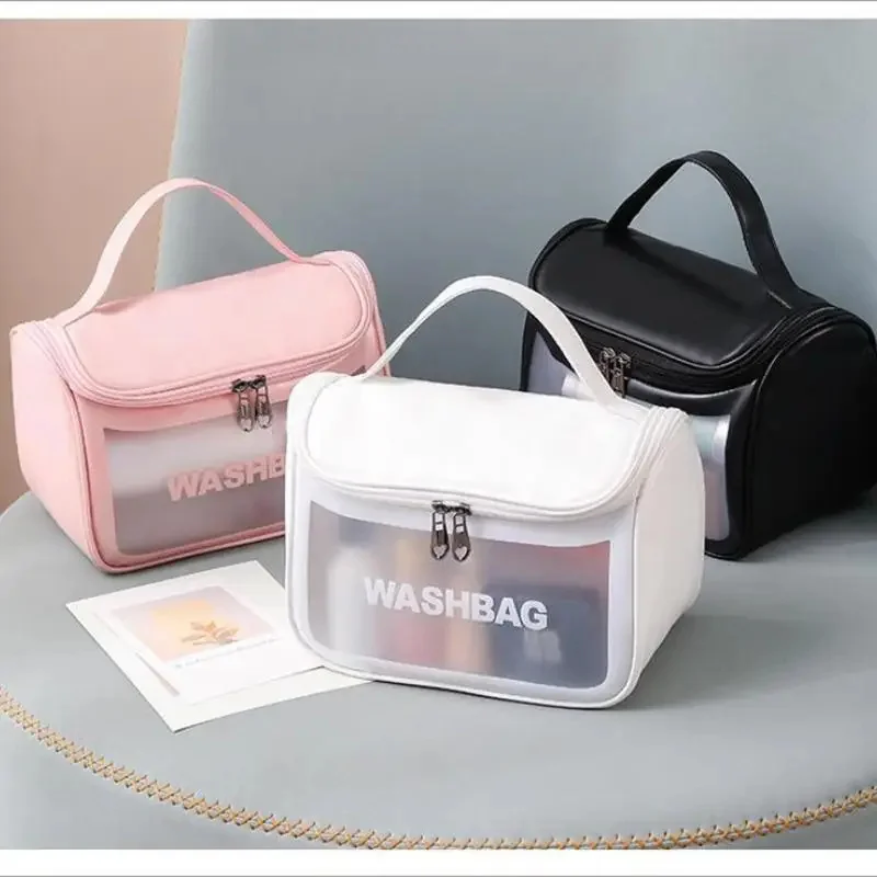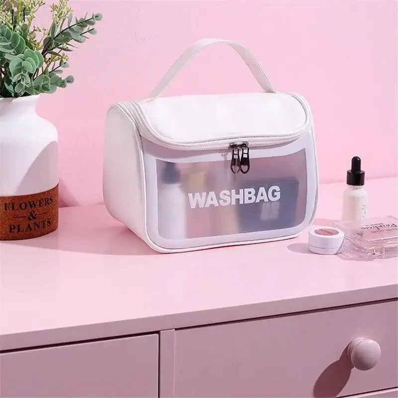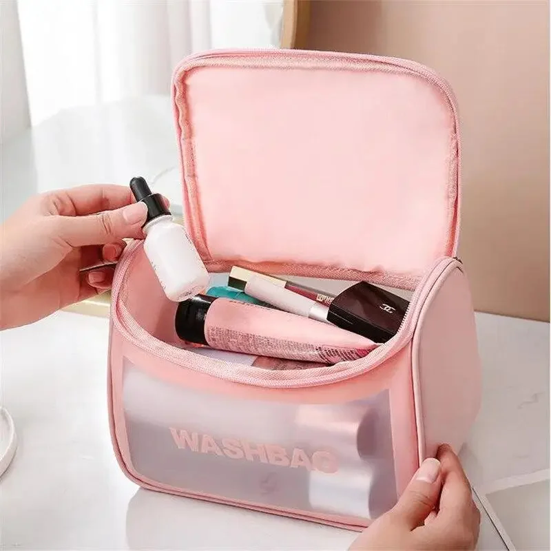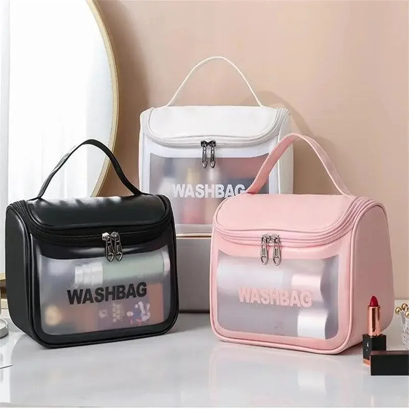 Women Zipper Translucent Scrub Wash Makeup Bag Travel Large Capacity Cosmetic Bags PVC Waterproof Portable Storage Beauty Case