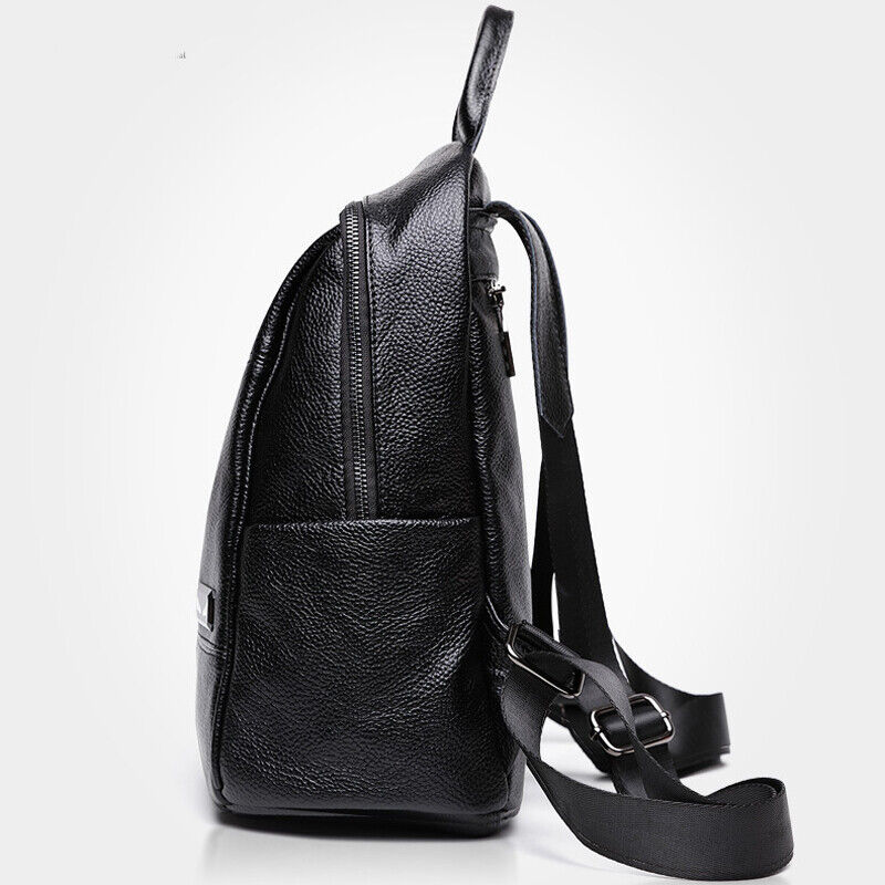 Women's Backpack Genuine Leather Black Zipper Travel Backpack College Bag
