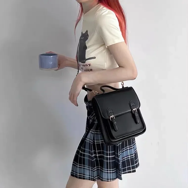 Women's Backpack Vintage Leather Large Capacity Crossbody Bags Retro British Academy Style Handbags Girls Small Shoulder Bags