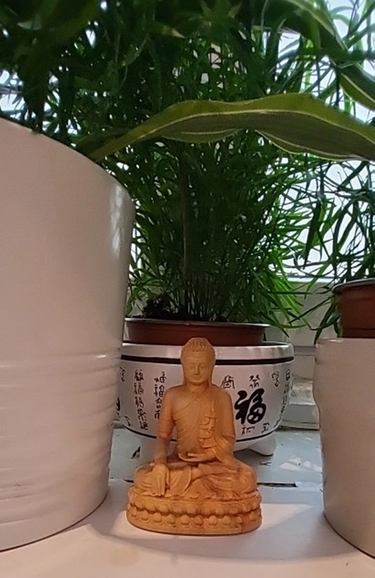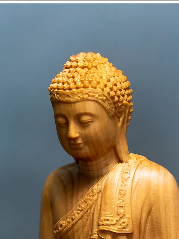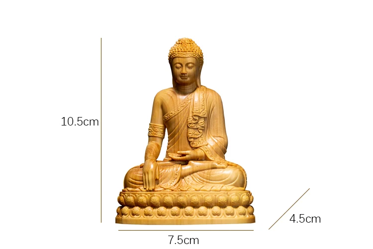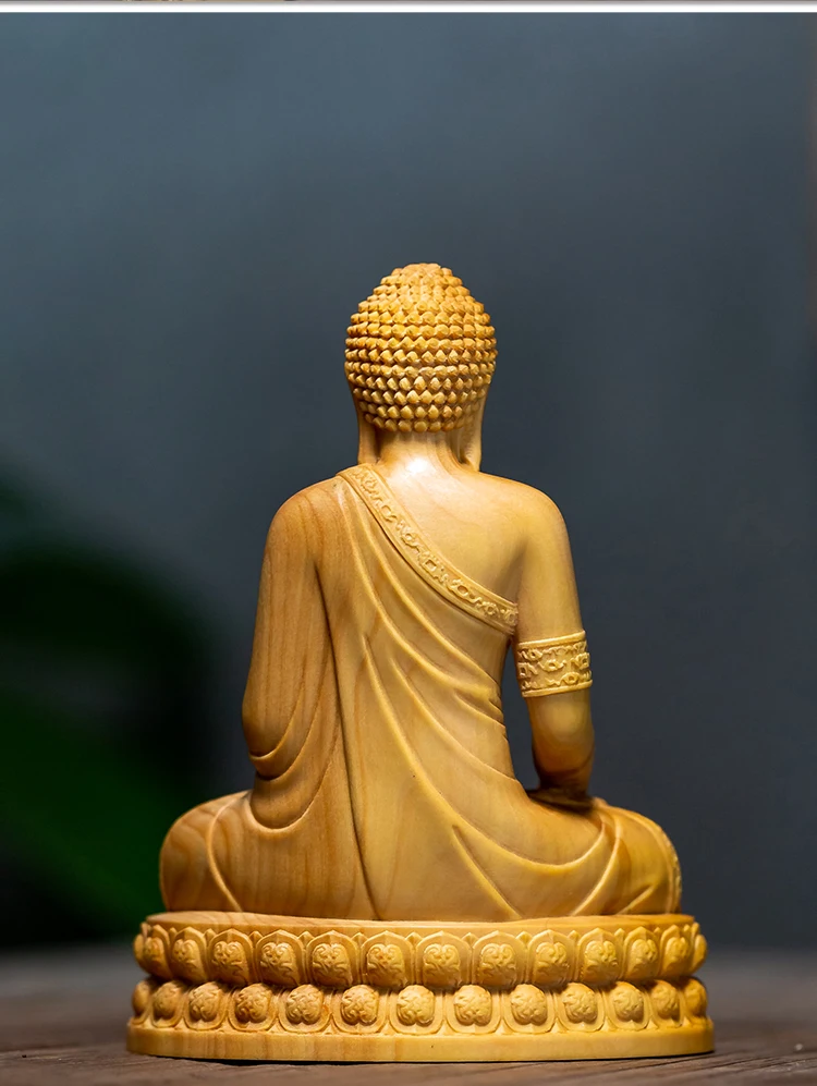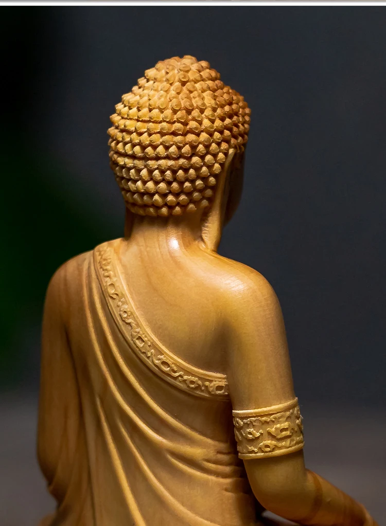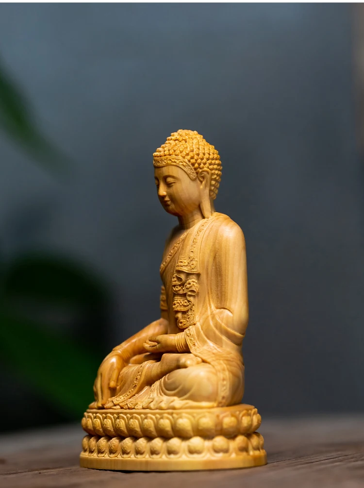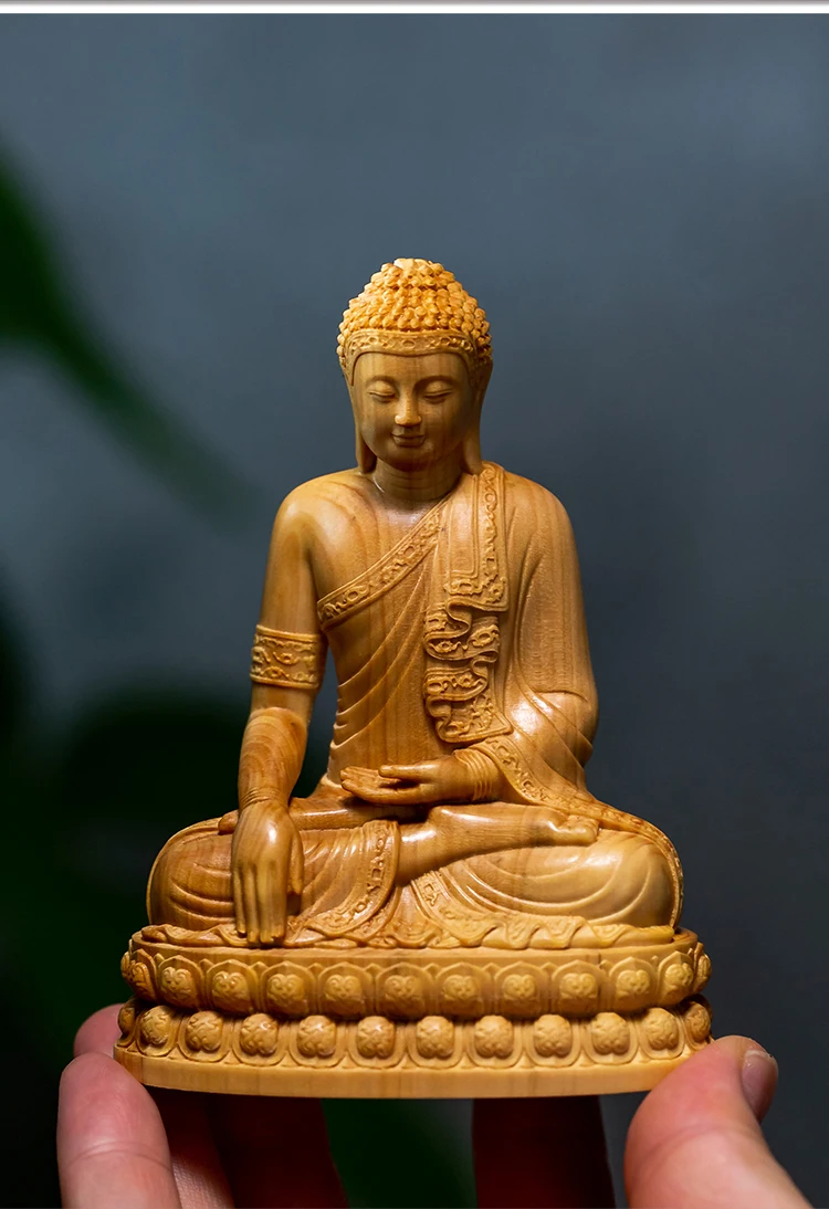 Wood Carving Shakyamuni Buddha Figurine Small Statue Aesthetic Room Decor Crafts Home Decoration Collection Ornaments 10cm