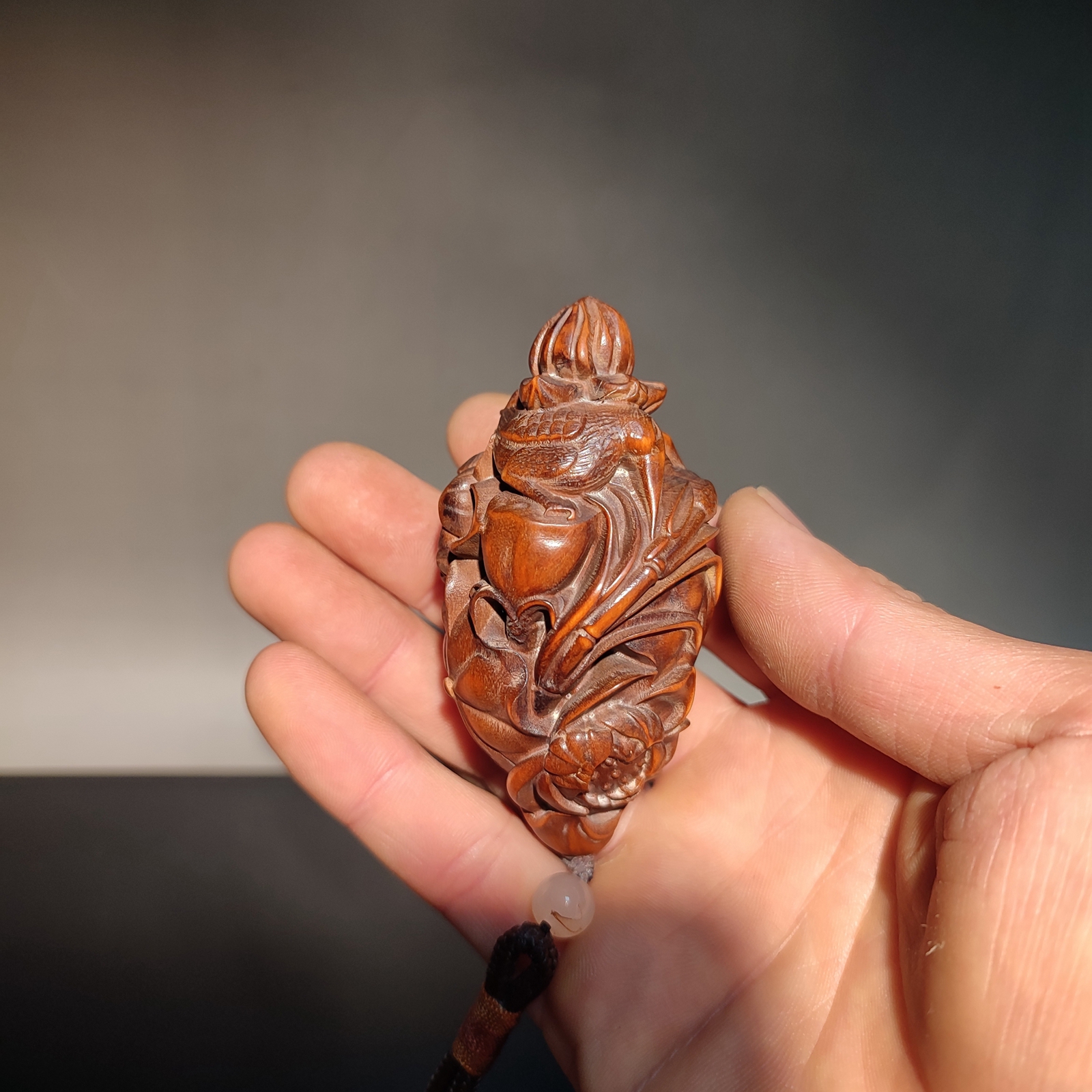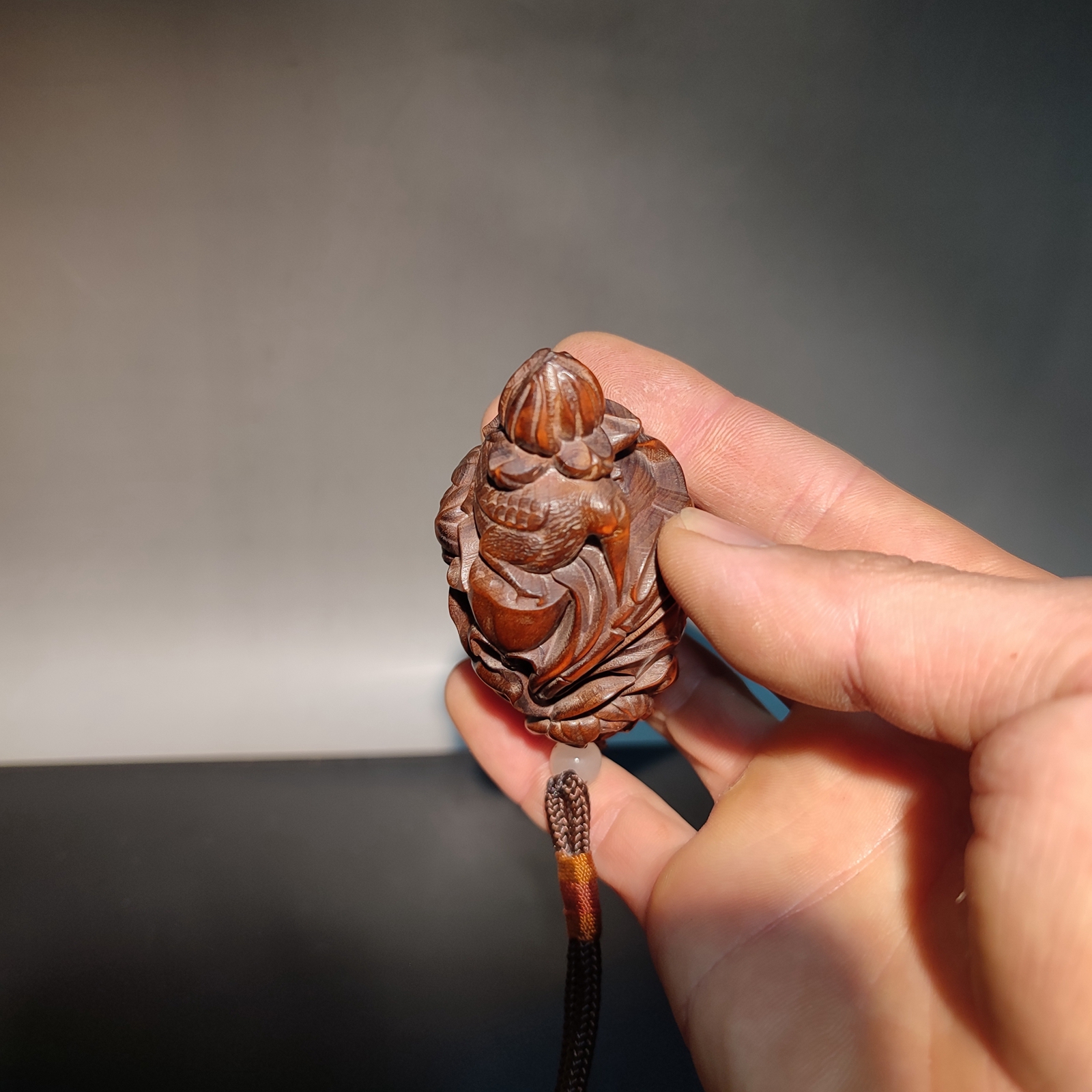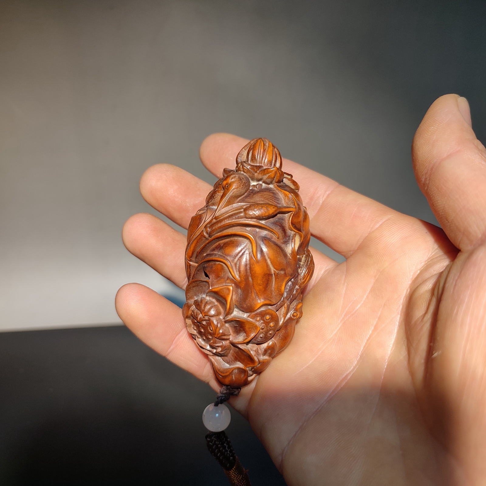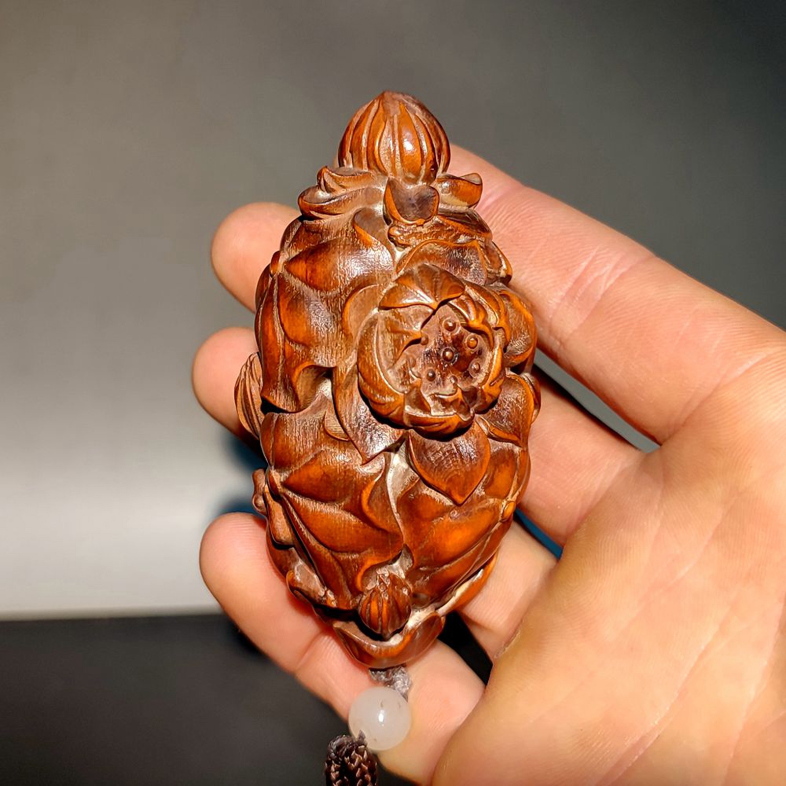 wood carving wooden Lotu frog wooden carved statue Portable mini Boxwood gift