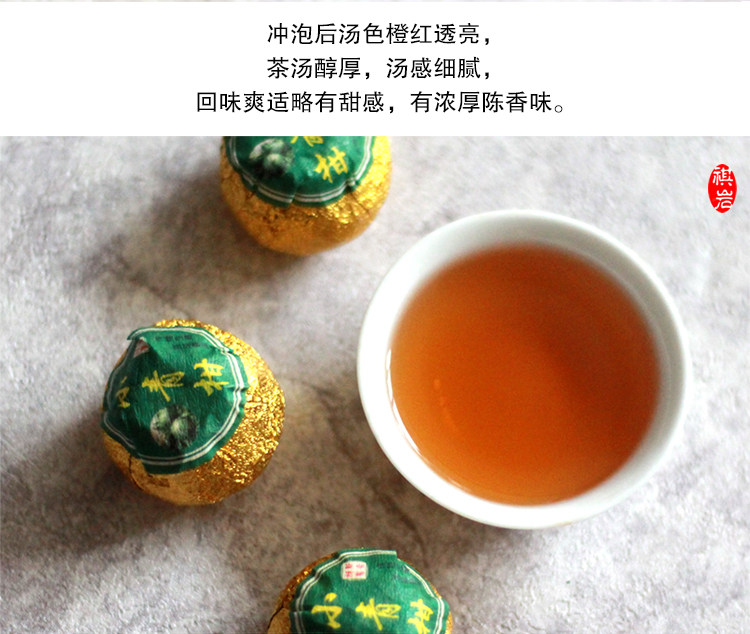 Description: Delicious high quality Pu-erh tea leaves from Yunnan are aged for four years and packed into the rind of a whole tangerine. This very special Pu erh tea has an exceptionally smooth and earthy flavour. To make this rare artisan Pu erh, a small circle is carefully carved in the roof of a tangerine fruit. The meat is then removed, leaving only the peel behind. Loose leaf Pu erh tea from the Yunnan province of China, is delicately placed into the whole tangerine peel and closed using the small circle of peel that was previously removed. The tea-filled tangerine peel is then left to age and mature over time. This allows the natural citrus oils to infuse into the Pu erh tea, leaving a wonderfully rich and earthy flavour with fragrant and citrussy notes of tangerine. Dried tangerine peel is known in Chinese as ‘Chenpi’ and is traditionally used to add flavour in Chinese cooking. This tea is a great choice for seasoned tea-lovers and tea connoisseurs. It is earthy, smooth and full-bodied highlighted by exceptionally light notes of citrus. The leaf has a sweet, honey-like aroma with citrussy undertones. Each one is around 30 grams. Brewing Guide: To enhance the tangerine flavour of your brew, break off a piece of the tangerine peel and add it to your Gaiwan or teapot before brewing. Use 200ml of water per 3-4g of tea. Boil water to 100â? steep for 30 seconds.