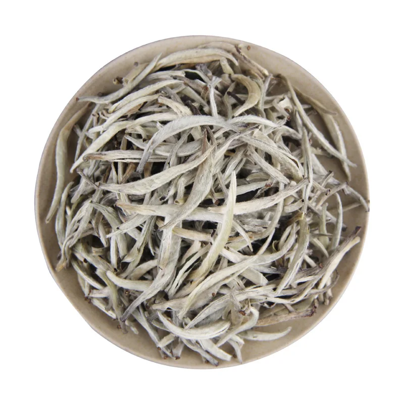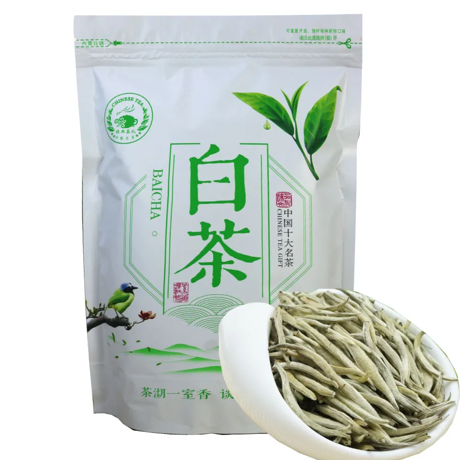 Product Name:White Tea Production Date:This Harvest Season. Net Weight: 100g/bag. Tea Origin: Fujian, China Store Conditions: Cool and ventilated place, avoid direct sunlight. Tea leaves (Dried): It is fat bud and it has white hair. Aroma:The fragrance is pekoe flavour. Infusion:The soup is yellow, green and clear, and the taste is light and sweet.