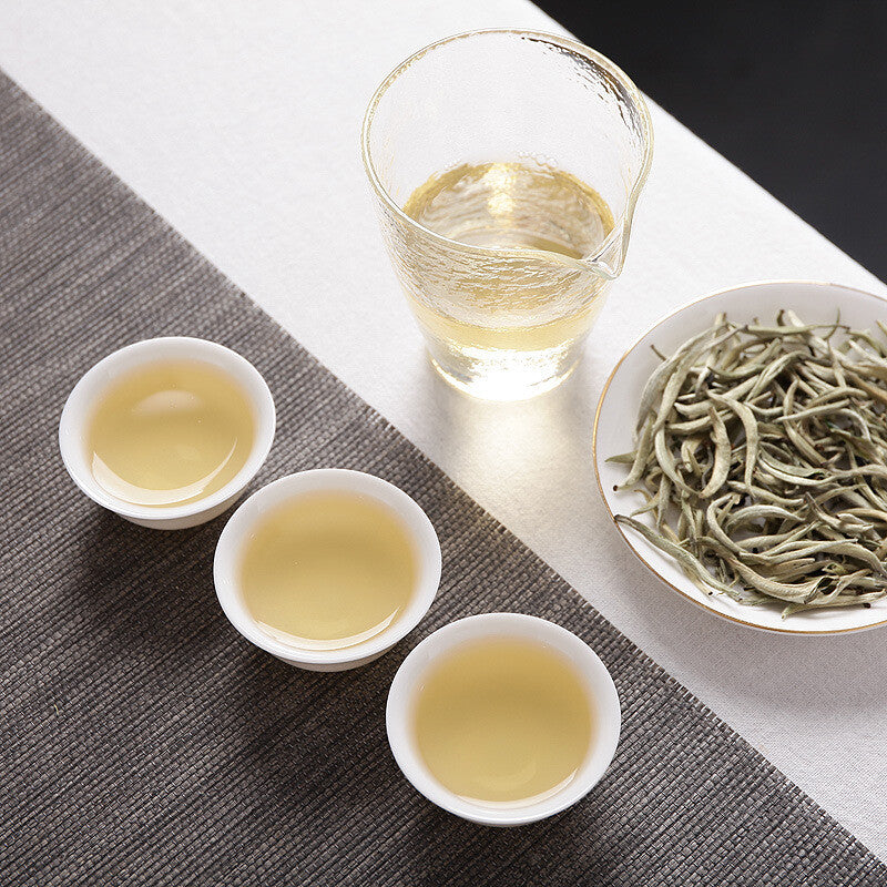 White teais harvested before the tea plant's leaves open fully, when the young buds are still covered by fine white hairs, hence the name "white" tea. These buds and unfurled leaves from the newest growth on the tea plant are handpicked and then quickly and meticulously dried. This minimal processing and low oxidation results in some of the most delicate and freshest tea available.