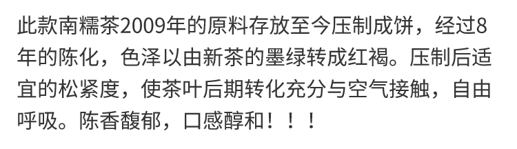 Production date: Tea Leaf Raw Materials of Nannuo Tea in 2009, Tea Pressed Product date 2017 year.