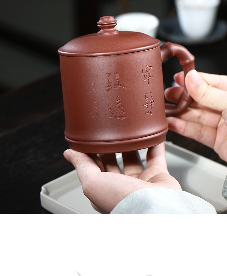 Zanghutianxia Large Capacity Yixing Zisha Cup Handmade Men's Tea Cup with Lid Personal Dedicated Office Teaware Bamboo Cup with