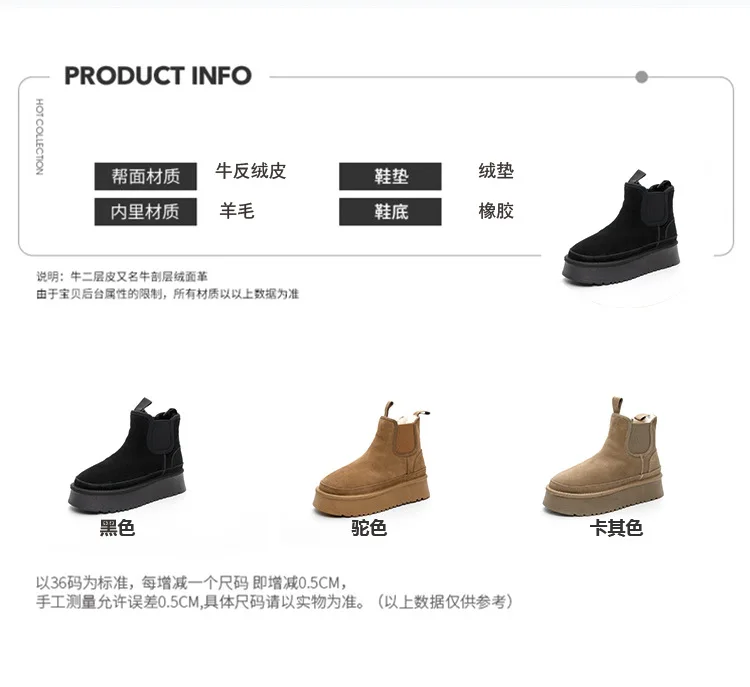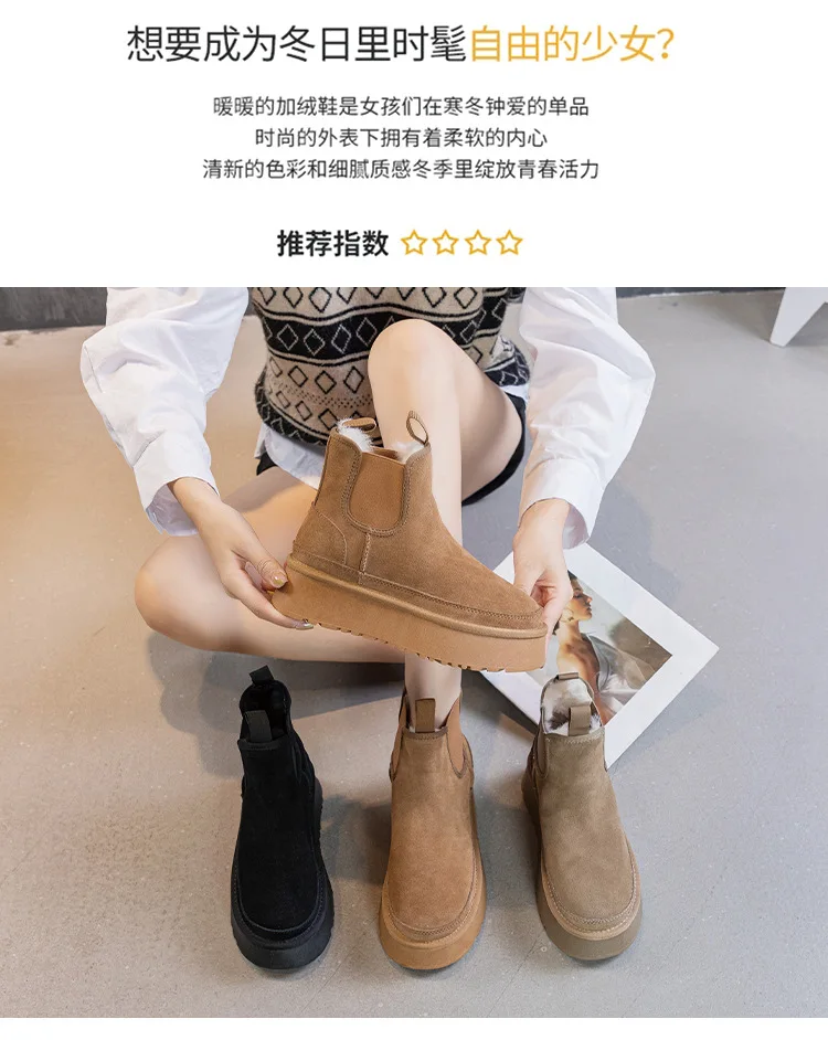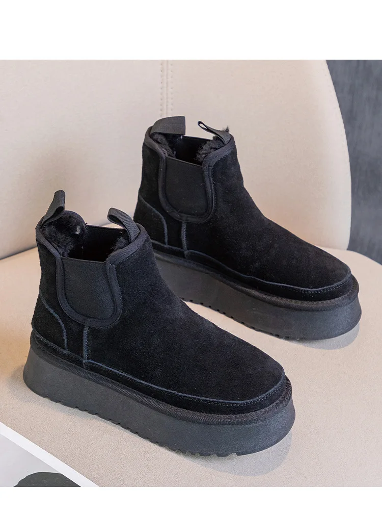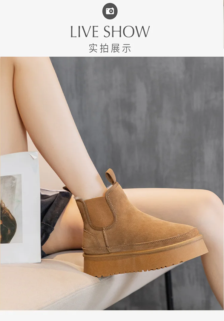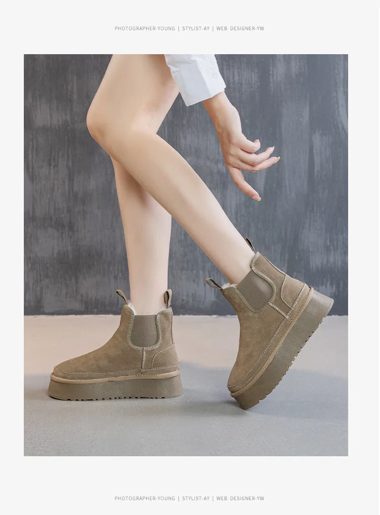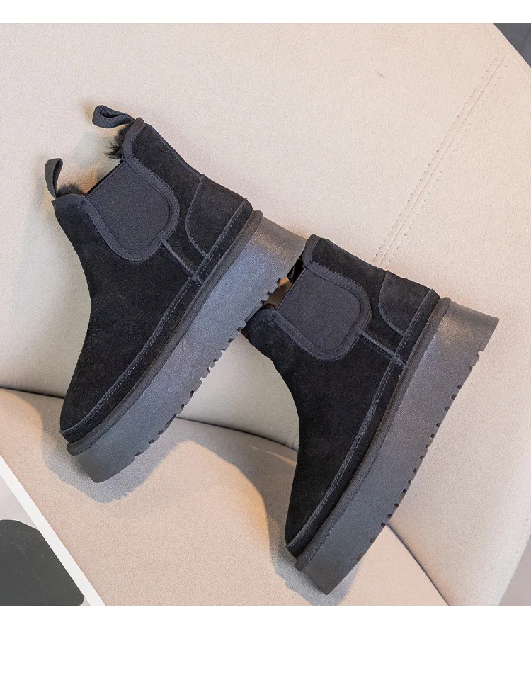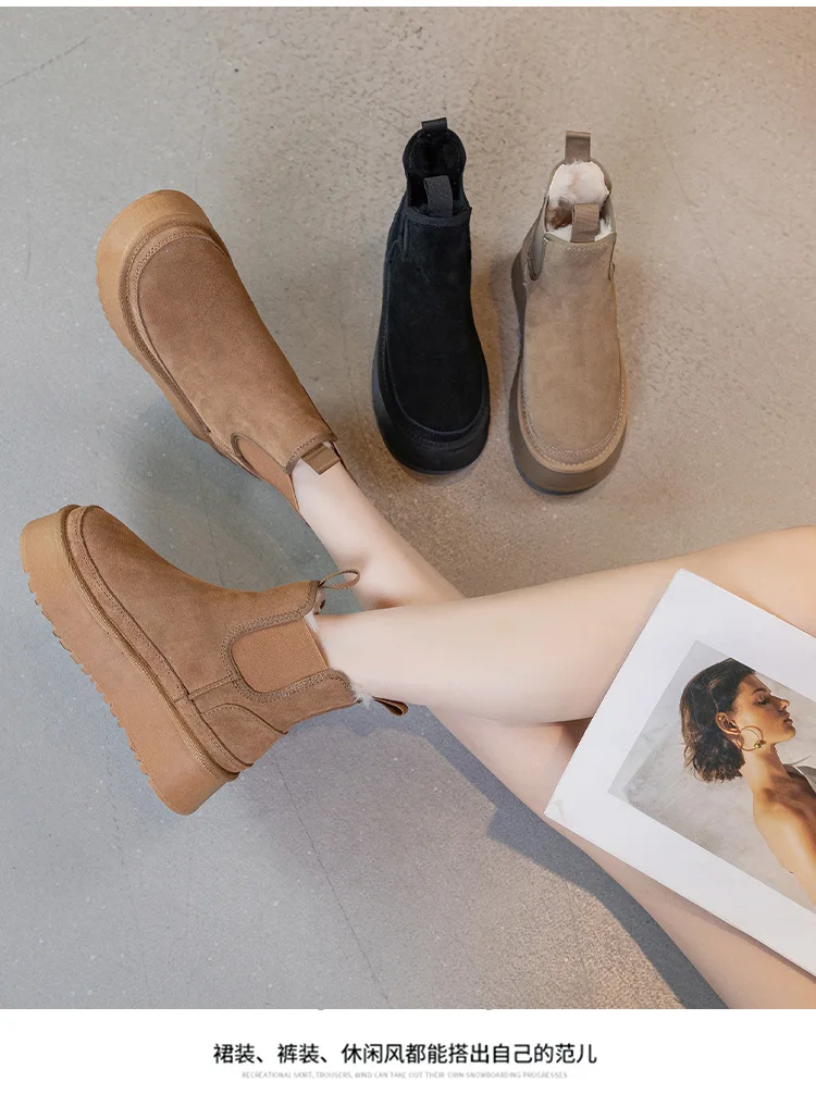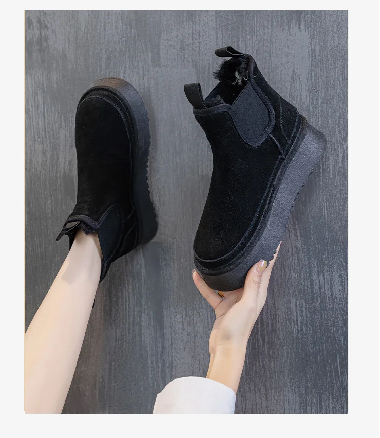 ZR DIARY Leather Snow Boots Women Winter Cow Suede Ankle Boots Thick Sole Warm Fur Chelsea Bootie for Female 6691